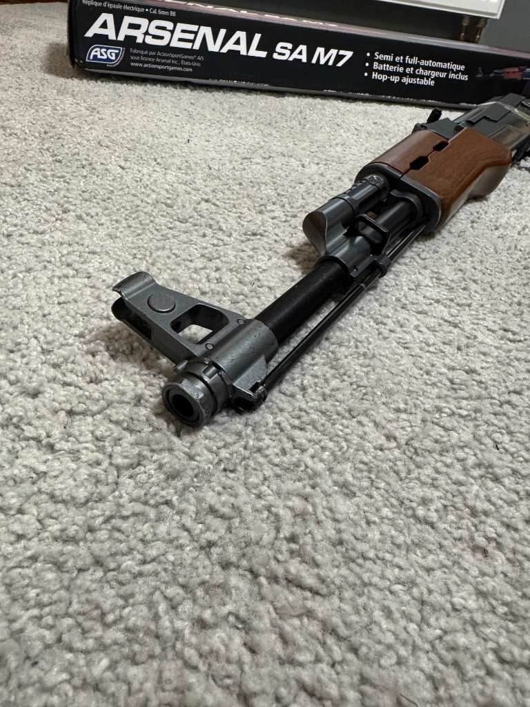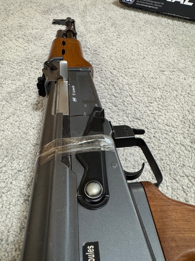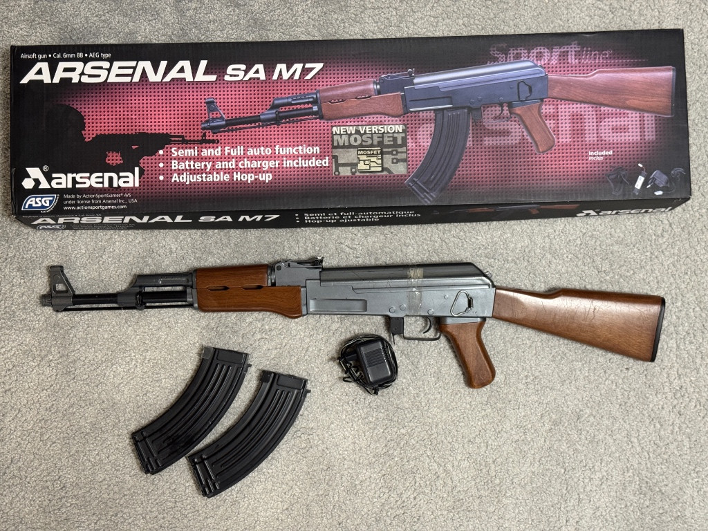 Prodám AK-47 značky ASG s MOS-FETEM a s ABS imitacemi dřeva. Zbraň jsem používal 1 sezónu, potom jsem přešel na lepší a tuhle jsem měl jako záložní. Zbraň se mi nikdy neporouchala, za mě je velice spolehlivá Doporučená baterie: NiMH 9,6V s malým konektorem Tamiya. Horní kryt přilepen lepicí páskou protože jen špatně sedí. Bohužel k ní nemám baterii. Prodávám v takovém stavu, v jakém je. Obsah balení: zbraň, 2x točné zásobníky AK-47 600 ran, originální nabíječka Ni-MH baterií, náhradní patka pažby, originální návod Původní cena: 4 000 Kč Možnost osobního převzetí nebo zaslání na adresu. V případě zájmu a více info prosím SMS/e-mail.