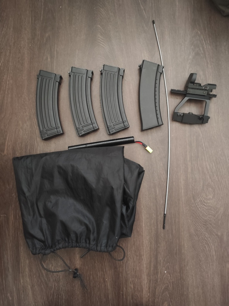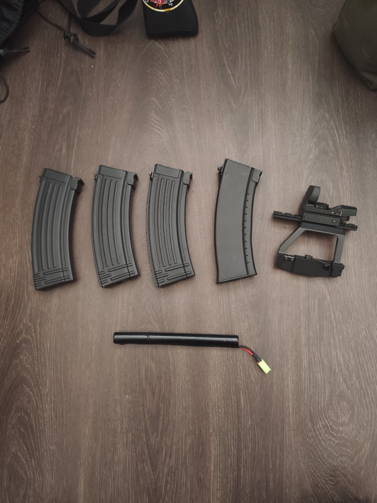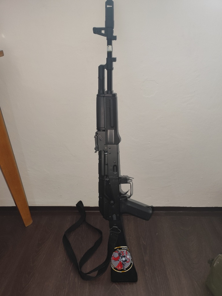 Prodám tuto elektrickou zbraň AK-74 od společnosti CYMA ve verzi Blue-Edition (vylepšené vnitřnosti oproti originálu). K tomu přidám čtyři zásobníky (3 tlačné midcap a jeden točný hicap), montáž, reddot, baterii, tyčinku pro čištění hlavně a obal. Vše je plně funkční, prodávám z důvodu koupi nové. Osobní převzetí v Brně, popř. po domluvě zašlu na dobírku.
