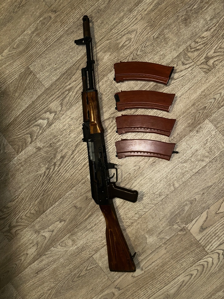 Zdravim chtěl by jsem nabídnout poctivího kalacha v plynu se starým nezničitelným dřevo kovovým tělem, tělo nemá značku ale originální ražení…psst hehe. Ale vnitřek je od WE.. spíše by jsem za to rád do rodiny vyměnil kalacha s hadicí ale dobré ceně se prodej nebrání. Jsou k tomu 4 zásobníky a jeden má udělaný ventyl na hpa hadici ale funguje stále i na plyn.