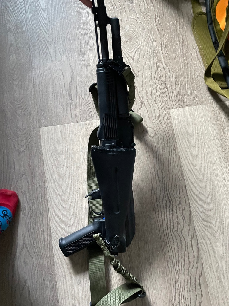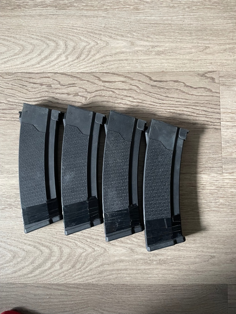 Prodám airsoft AK74 – kompletní set Prodám airsoftovou zbraň AK74, hraná pouze na 4 hrách. Zbraň je plně funkční, má jen pár drobných škrábanců z běžného používání. Prodávám jako celek – zbraň, popruh, nabíječka, baterka a 1 točný zásobník za 3500 Kč. Pokud budete mít zájem, mohu přidat i 4 tlačné zásobníky za dalších 500Kč (celkem tedy 4000Kč). Zásobníky samostatně neprodávám. Osobní předání pouze. V případě zájmu pište do zpráv.sleva při rychlém jednáním.