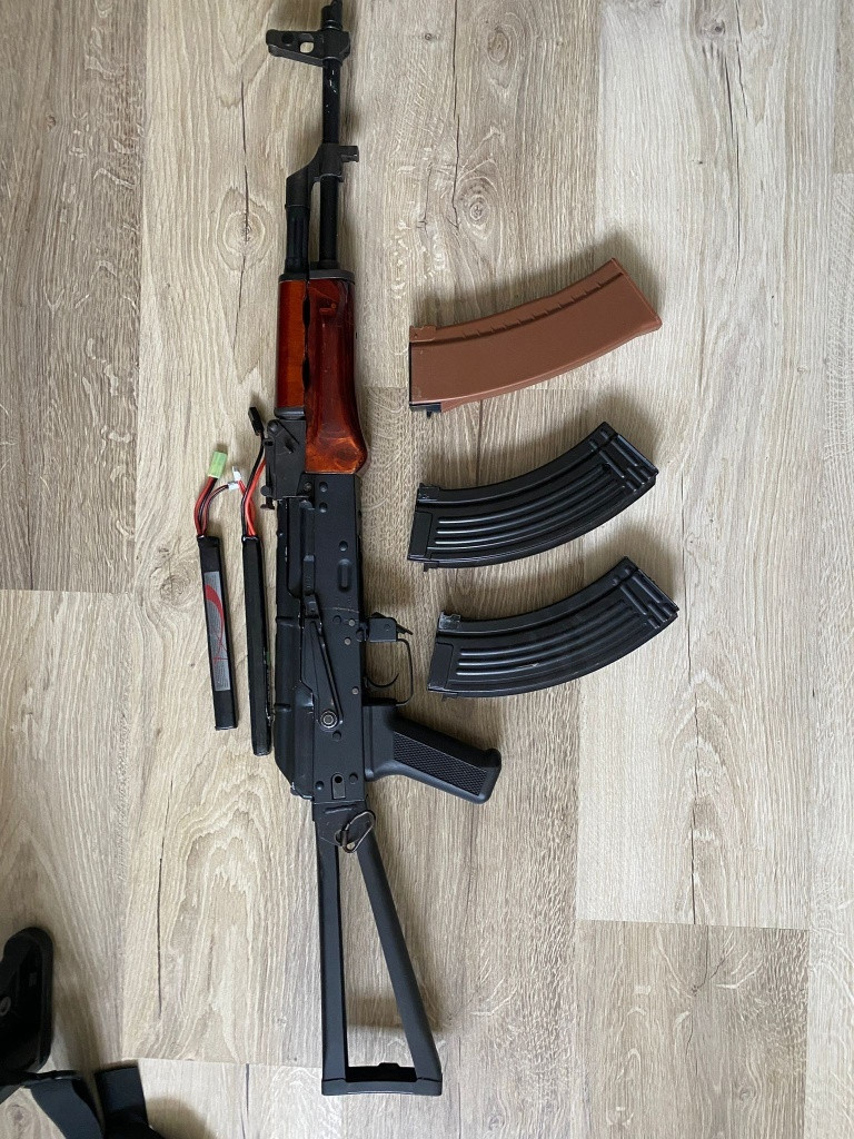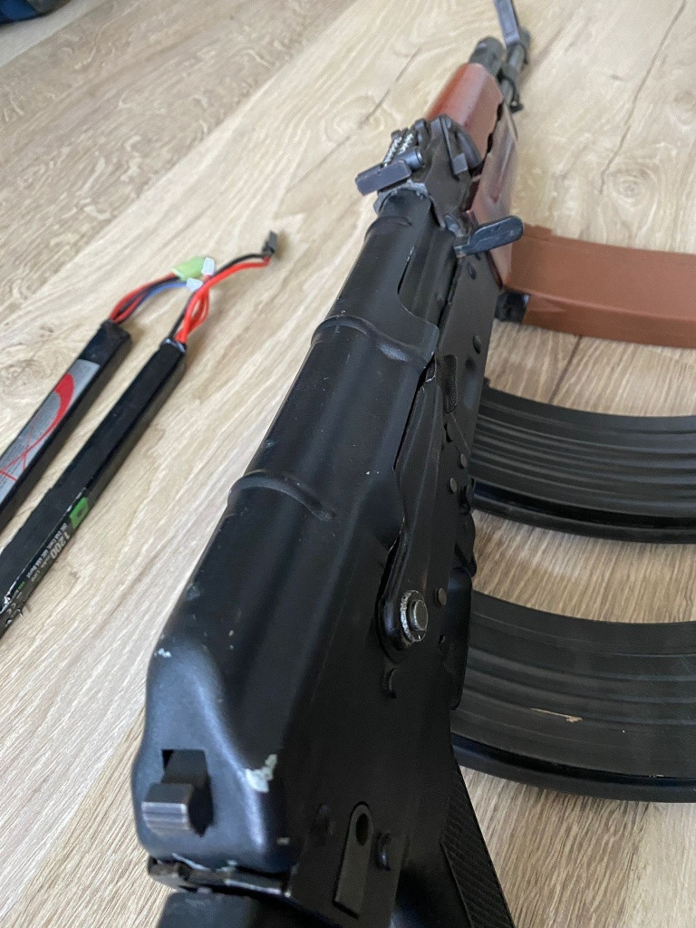 AK-74N Celokov+Dřevo Tuning Zdravím prodávám vyupgradovaný AK-74N celokov z předpažbím Dřeva PO SERVISE! značka ak - CYMA Je upgrade z venku i ze vnitř k tomu jsou 2 točný a 1 tlačný + 2 baterky 1 baterka - 1200mAh Lipo 11.1V 2 baterka - 1300mAh Lipo 7.4V Podává nejraději 0.28bbs Výkon - 130-140m/s cca 1.8J (naposledy měřeno) Důvod proč ho prodávám tak je ten že jsi chci koupit jinou zbraň protože do mého vybavení se nehodí AK platforma Děkuji hezký den