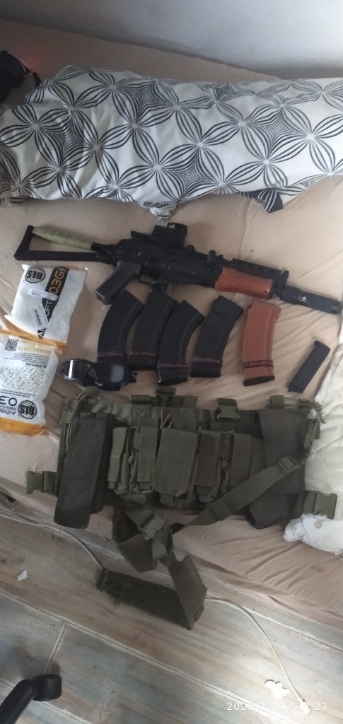 Celokovové tělo a kovové RIS kolejnice Skvělá mobilita díky sklopné pažbě (délka zbraně 500/730 mm) Zesílený mechabox verze 3 s kovovými vnitřními díly Úsťová rychlost 115 m/s, energie 1,32 J Dostřel přes 50 metrů Bronzová vnitřní hlaveň o délce 229 mm Plastová Hop-Up komora, regulovatelná RIS kolejnice pro montáž optiky nebo kolimátoru Je k tomu red dot 4 tlačný zásobníky a jeden točak prodám i gear kuličky jsou 0.3 myslím brýle plnička a vše co je ve fotce samozřejmě nemusíte kupovat vše Za vše bych chtěl 7500 za kalacha se zásobníkama a kuličkama 6000 až 6500 záleží jestli si proto dojedete nebo dopraví zasilkovna