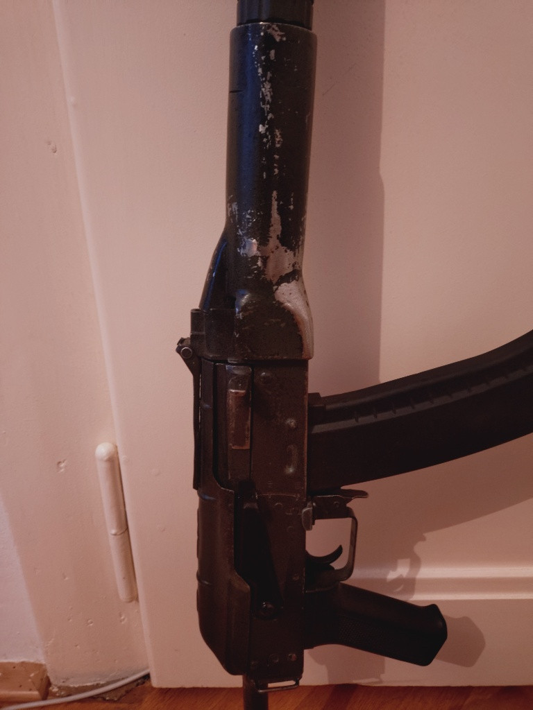 Prodám Ak s tlumičem předpažbí je vyrobeno z oceli. Uvnitř se nachází základní hlaveň, hliníková hop-up komora, silikonová gumička, zesílený mechabox, shs hlava válce, shs tryska, shs protitlaká hlava pístu, celokovové ozubení pístu, zátěžová kola, zátěžový motor shs, alu trn pružiny na ložisku, pružina m130, spínací spoušť s mosfetem. Ke zbrani baterie 9,6v + 2x tlačné stanagy A hlaveň je o pár mm delší a vyčuhuje, chtěla by zakrátit, nebo upgredovat na lepší. Jinak střílí pěkně.