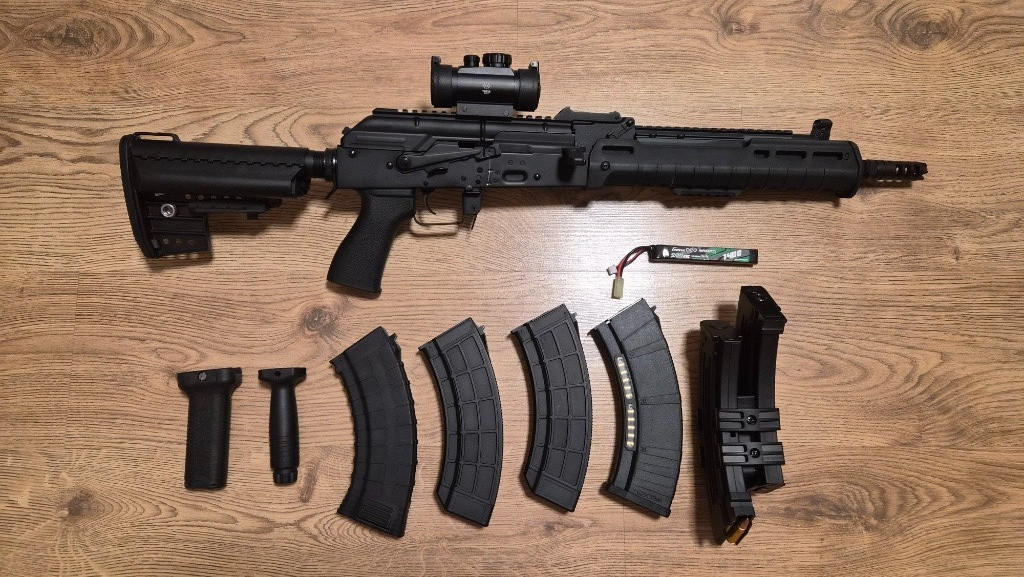 Prodám málo používané AK od Cyma. Zbraň je v základu a dává kolem 1,7J s 0.32g. Ke zbrani je nekolik zásobníků, včetně elektrického s imitací nábojů, baterie, kolimator a klidnei ručky. K vyzkoušení a odběru Praha 5, ale teoreticky mohu nekam dovézt.