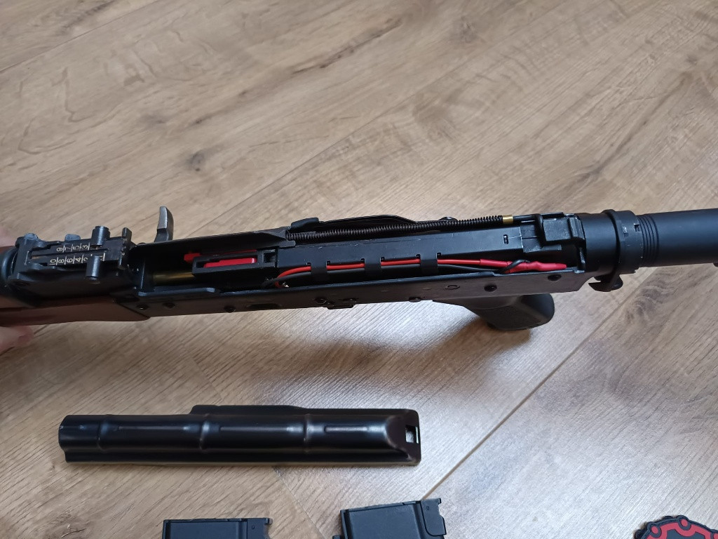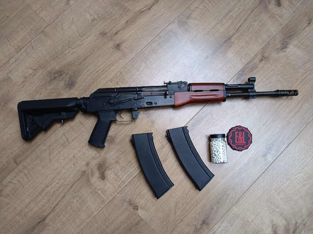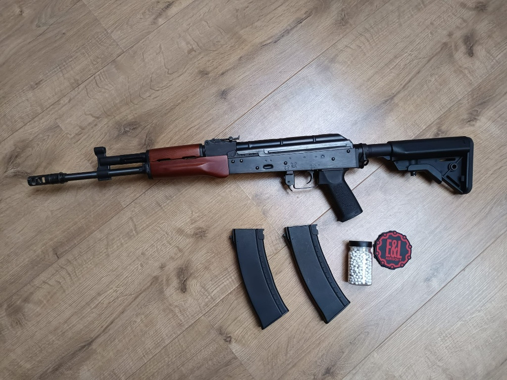 Prodám AK PMC od E&L gen.2 . Už od výrobce lepší díly ,motor EL170 , větší ložiska , lepší vzduchotechniku, přesná hlaveň . Navíc má zbraň mosfet. Zbraň je plně funkční a v pořádku. Střílí jednotlivé rány i dávkou. Materiál zbraně Ocel/ Dřevo . Velkou výhodou je výsuvná pažba . Ke zbrani je 2x zásobník a originální krabice.