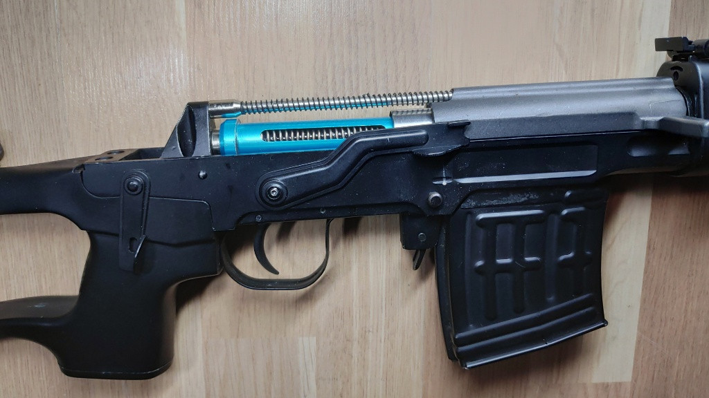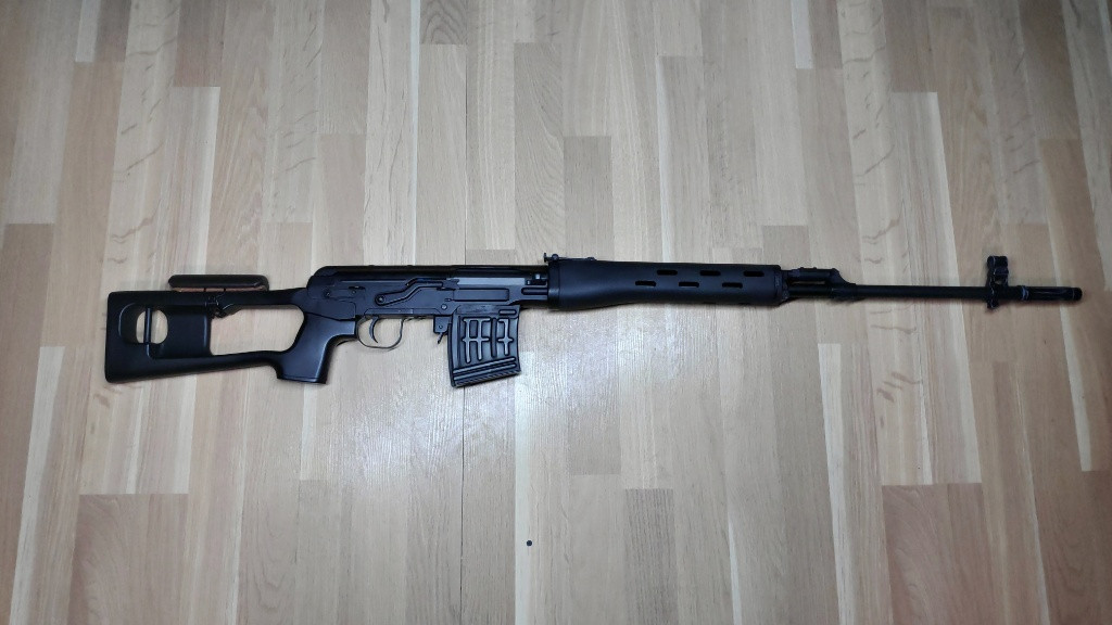 Dobrý den, mám na prodej SVD Dragunov od značky A&K, tělo a zásobník je celokov, pažba, předpažbí plast. Zbraň je v základu. Zbraň je komplet promazaná. Pružina se snadno natahuje, hádám M150. Střílí celkem přesně i bez optiky. Zbraň nese známky používání na těle. Pouze osobní předání ve Vyškově s možností vyzkoušení. Při rychlém jednání jdu na 1700,-.