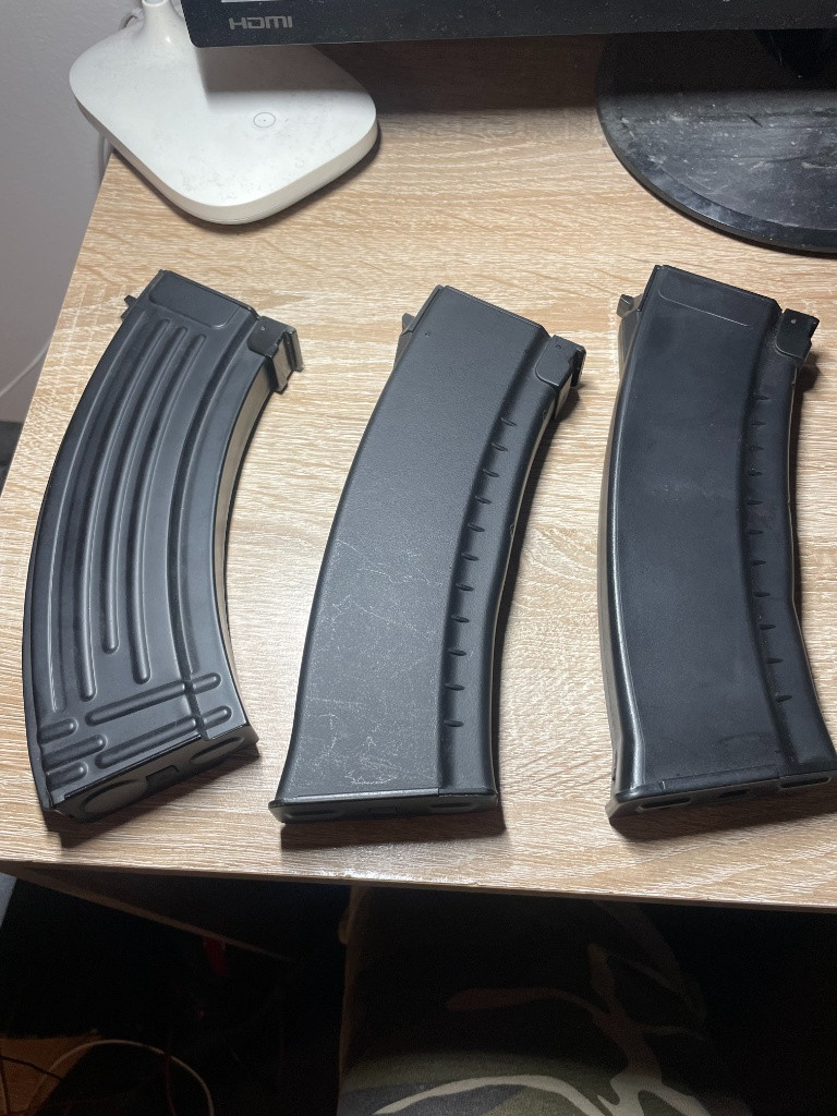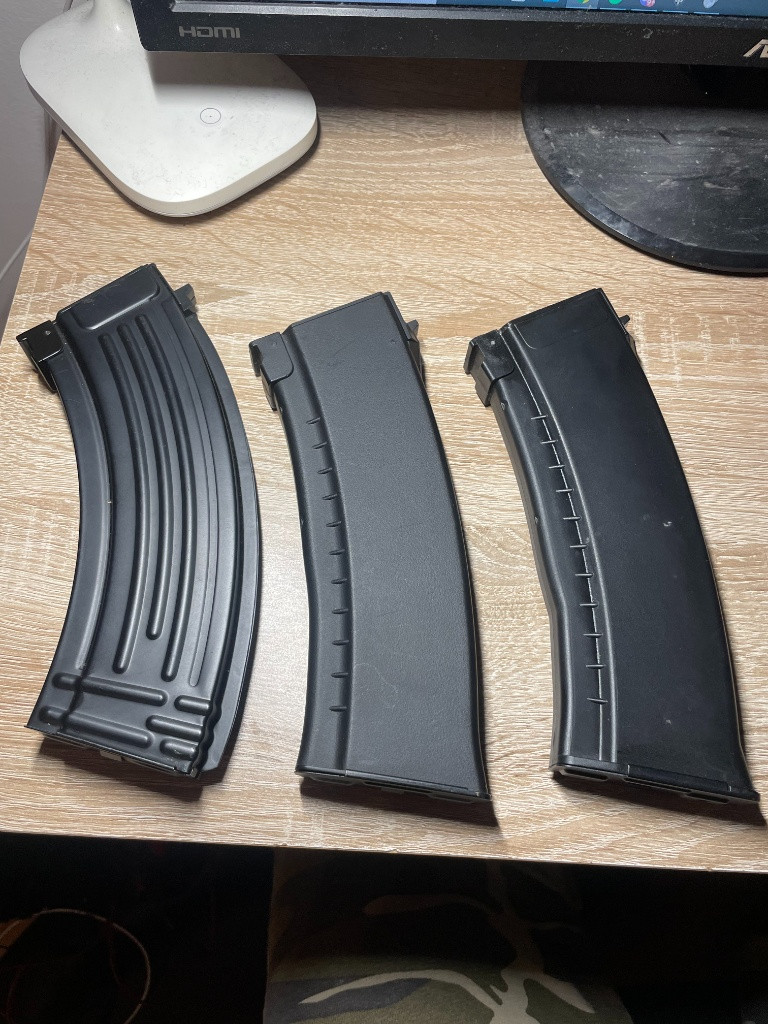 AK už nemám, tak se třeba někomu budou hodit. 1x kov (CYMA), 2x plast (jeden CYMA druhý si nejsem jistý) Minimálně používané, nehrál jsem s AK tak často a pak šlo do prodeje.
