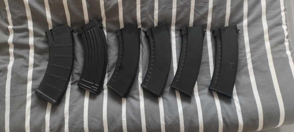 Zdravím, prodám tohohle kalacha od cymy. Zbraň má vyměněny mechabox za qsc, ml hop gumu, ml přesnou hlaveň, epes hlavu pístu, kovová tryska (asi retro už nevim), pružina 125 ultimate, zbytek základ. V téhle konfiguraci dává stabilně 1,75 J s 0,32 kulemi. Zbraň má nastříleno max 2 pytle kulí. Ke zbrani přidám 4 tlačáky a 2 točáky. Mužem se domluvit i na baterkách bo mi budou k ničemu. Kolimator na fotce nejprodávám. V případě výměny bych preferoval ak74u ale nebráním se ničemu. Ideálně psát na whatsapp/sms na email moc nekoukám
