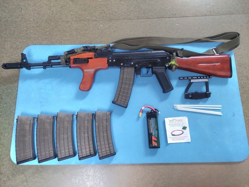 Zdravim, Prodam AKčko v plnem upgradu, zaklad zbraně je model CM048. RETROArms - mechabox, motorova klec, hop up komora, pist, raminko trysky přerušovač střelby, zapadka zpětného chodu, ložiska kluzna 8mm, spoušť, šroub přepínače střelby, cnc kostka proti bezproblemoveho nasunuti zasobniku a uchyceni hop komory Epes - hlava valce, hlava pistu, tryska- všechno dural SHS - kola 300:100 šikme ozubeni, plný nerezovy žebrovany válec, kulisa přepínače. Motor ASG infinity 22K, procesorovka Jefftron V3, akumulátor Lipol 11,1 V 4,2 Ah (vleze normalne do pazby) MADBULL - NEREZOVA HLAVEŇ 499MM 6,03MM, GUMIČKA POSEIDON PEGASUS 50SHORE, pružina M140. Bočni montáz na optiku, vytěrák hlavně, 3- bodovy popruh, 6 ks tlačnych zasobniku na 150bbs. Úsťovka 118m/s 2,24J s 0,32g bb.