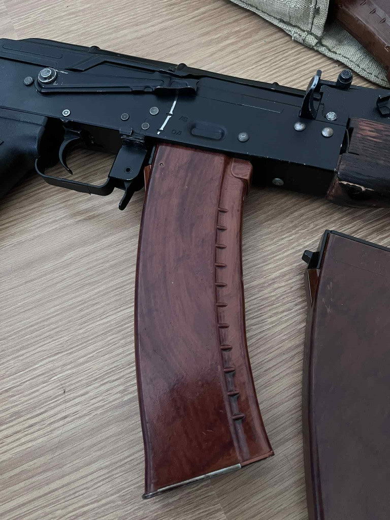 Prodám toto AK74, telo Cyma 0.48, je na tom drevo, LCT DTK-1 kompenzátor, origo popruh, origo sovietska sumka. Vnútro: JeffTron mosfet V3 brko M130 Guarder, SHS trn, SHS vysokozáťažový motor do M170,SHS ocelové CNC kola 18:1, systema ramenko, vzducharina SHS plný válec, SHS píst s celkovovým ozubením, CNC hliníková hlava pístu, SHS CNC hlava válce, SHS cnc tryska 19,7 mm, vypodložkované, premazané. Hlaven nerezova 6,02 455mm, SHS CNC komora, ML guma 60° žltá, podložená v komore Retro Arms podložkama, prítlak ML. Výkon akruálne 2J na 0,30g BB, 17 RPS na 11,1V, takže zo zakladu zostalo len telo a skelet mechaboxu. Zostava je spravena tak, aby dlhodobo vydržala aj M150. Cenu si predstavujem 8000.