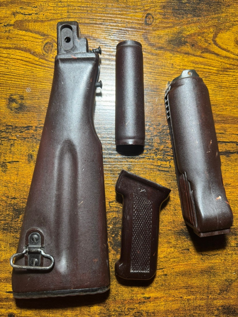 Prodám originální sadu pažbení pro pušku AK-74 v barvě švestka / plum. Výrobce SSSR/Rusko, ižmaš. Hezký stav, má šrouby na pažbu i heat shield, poslední set co mám. Kontakt na email, zásilkovna apod. není problém.
