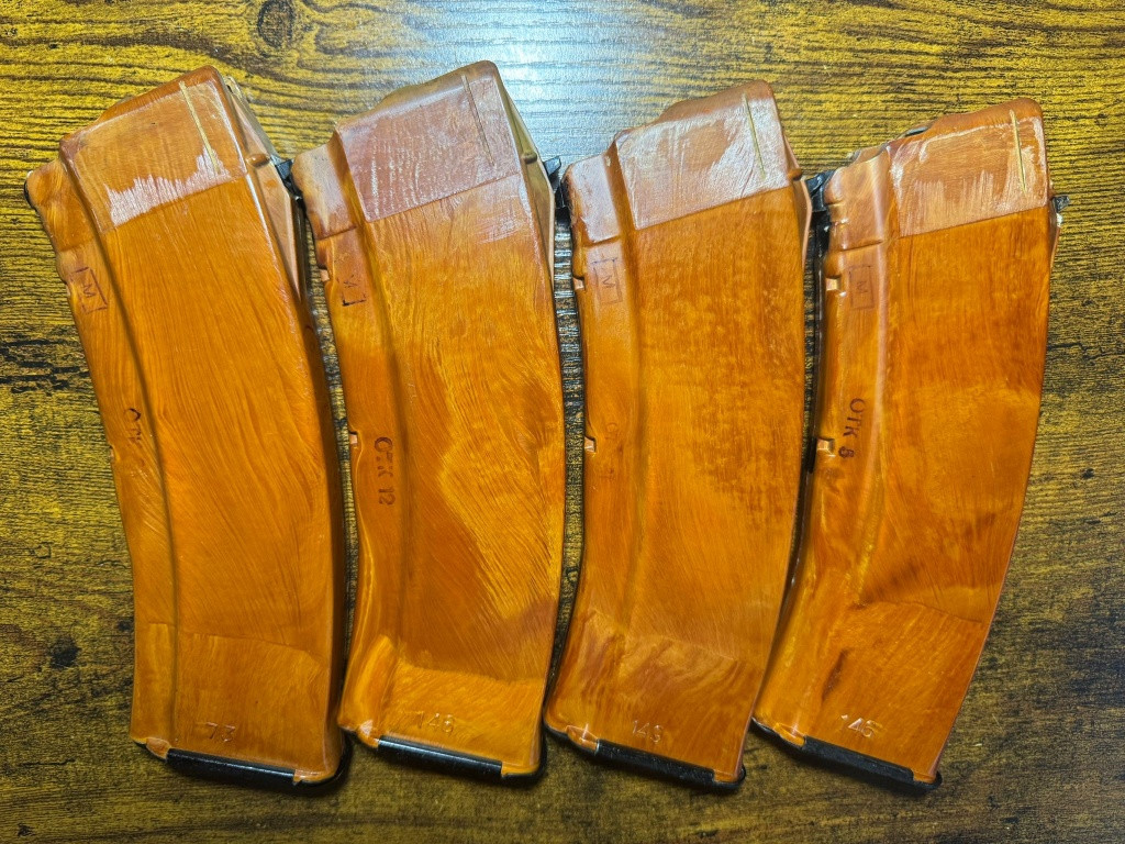 Prodám bakelitové / termoset zásobníky na AK-74, jsou origo ruské (sssr), výrobce ižmaš. Stav bych řekl že A1, jako nové, nejhezčí co jsem kdy měl, mám tu tyhle poslední 4. Ráže 5,45x39, pasují samozřejmě do všech ostatních pušek tohodle typu, AKS74U, AK 74, BSR, SAIGA, ... Cena je uvedena za kus, kontakt prosím emailem. Poslat přes zásilkovnu není problém.