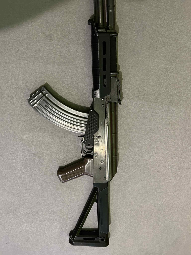 Zdravím, prosím nového AKM od EL, který nebyl na jediné akci, pořídil jsem si ho, nechal vyservisovat u kluků na divokém západě ale ani jednou jsem s ním nehrál, jelikož jsem si našel jiné koníčky a je mi líto ho tu nechávat pověšeného na zdi. Kalach je origo klasika s dřevem a já jsem si na něj vytisknul předpažbí, pažbu a zásobníkovou šachtu. Kalach má v sobě: procku leviathan, který lze nastavovat přes appku v mobilu, retro píst, epes hlavu pístu, cnc trysku SHS, quantum hop gumu a přítlak, cnc kolea a motor M170. brko je tam nalazený na 1,9J na 0,32g. Ke kalachu jsou 4 zásobníky, nabáječka GFC Smart, baterie Gens ACE Li-Pol baterie 11,1V 1200mAh, 25C, T- Dean - Stick Ke kalachu je původní dřevěně předpažbí a pažba.