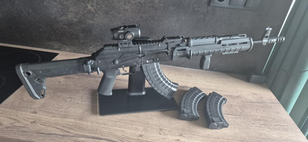 Prodávám AKM s MOE a Zhukov díly o výkonu 2,4J na 0,30g (cca 155m/s na 0,20g). Základ zbraně je CM.077A a uvnitř je následující upgrade: SHS motor short vysokozátěžový, SHS hlava válce, SHS kola 18:1, SHS M140 pružina, SHS píst, SHS hlava pístu, SHS tryska ak short, SHS ramínko, Jefftron mosfet, SHS nerez 6.03mm hlaveň, Systema silikonová hopka. Z vnějších dílů jsou na zbrani RVG ručka, přední uchycení popruhu a RIS lišta pod hlavní (vše M-LOK verze). Prisma není součástí. Zásobníky můžu po domluvě na ceně přidat (jde o 3ks Cyma pmagů). Důvod prodeje, že jde o náhradní zbraň, pro kterou nemám žádné využití - má za sebou jen tři kratší akce. Pořizovací cena asi 11 500 Kč, prodám za 8 500 Kč. Možno zaslat i zásilkovnou v původní krabici.