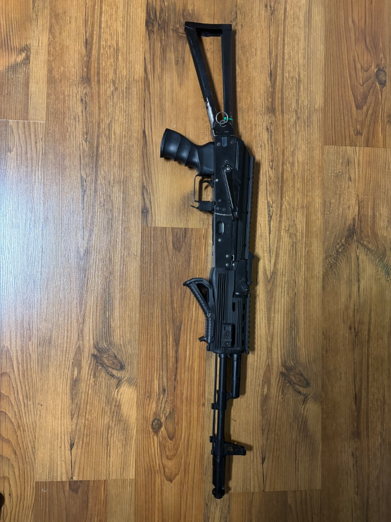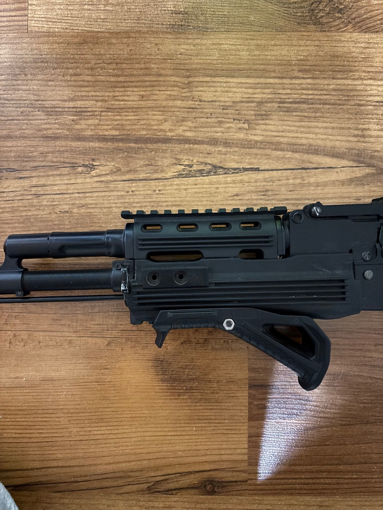 Dobrý den, prodám AKS 101 od (Cyma CM.040D) s originální krabicí. Tělo je celokovové, se sklopnou pažbou. Na zbraní měněn kryt závěru za verzi s RIS lištou, předpažbí, také s RIS lištou a ergonomičtější pažbička. Přidám popruh, baterii TOP ARMS (1600 MAh)a 3 tlačné zásobníky a horizontální grip. V případě zájmů dodám i originální vnější díly (předpažbí, když závěru a pažbička) Zbraň plně funkční, dovnitř zbraně nezasahováno.