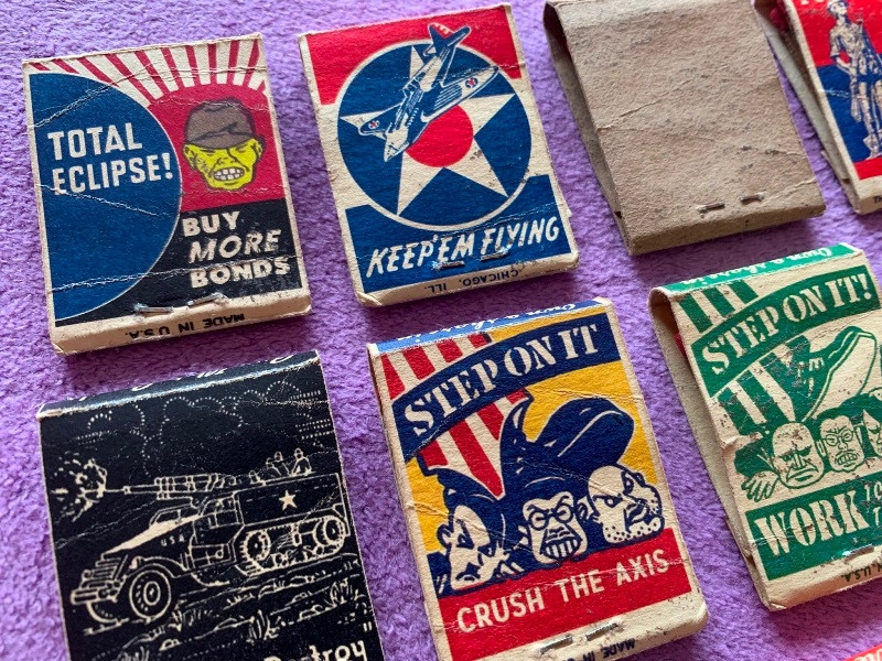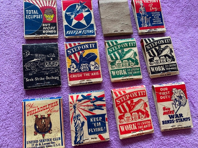 12 kusů amerických sirek, s motivem válečné propagandy 40. let. Nabídka mých předmětů je určena výhradně jen pro sběratelské účely. Tímto prohlašuji, že nejsem členem žádného hnutí směřujícího k potlačení práv a svobod člověka nebo takového, které hlásá národnostní, rasovou či třídní zášť vůči jiné skupině osob, ani taková hnutí nepodporuji. Stav na fotografiích. Cena za komplet 12 ks. Odesílám "pouze" přes Zásilkovnu (Česká republika - výdejní místo 89,-Kč, doručení na adresu 129,-Kč) nebo Packetu (Slovensko - výdejní místo 99,-Kč, doručení na adresu 169,- Kč). Po špatných zkušenostech na dobírku zboží NEODESÍLÁM.