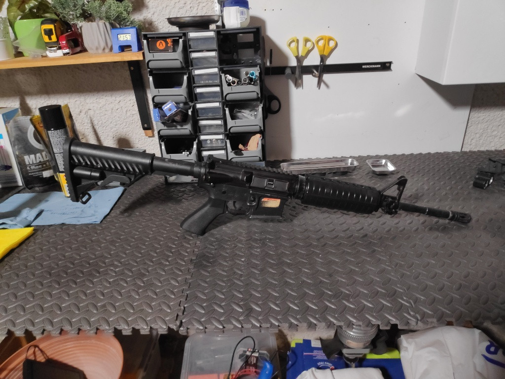 Ahoj, prodávám elektrickou M4 od APS s EBB blowbackem, blowback ramínko je nové, hliníkové. Výkon cca 1.5J s 0,20g. Prodávám jako záložku nebo sběratelku. Bez baterie a zásobníků. Konektor malá Tamiya. Posílám přes zásilkovnu. Poštovné hradí kupující.