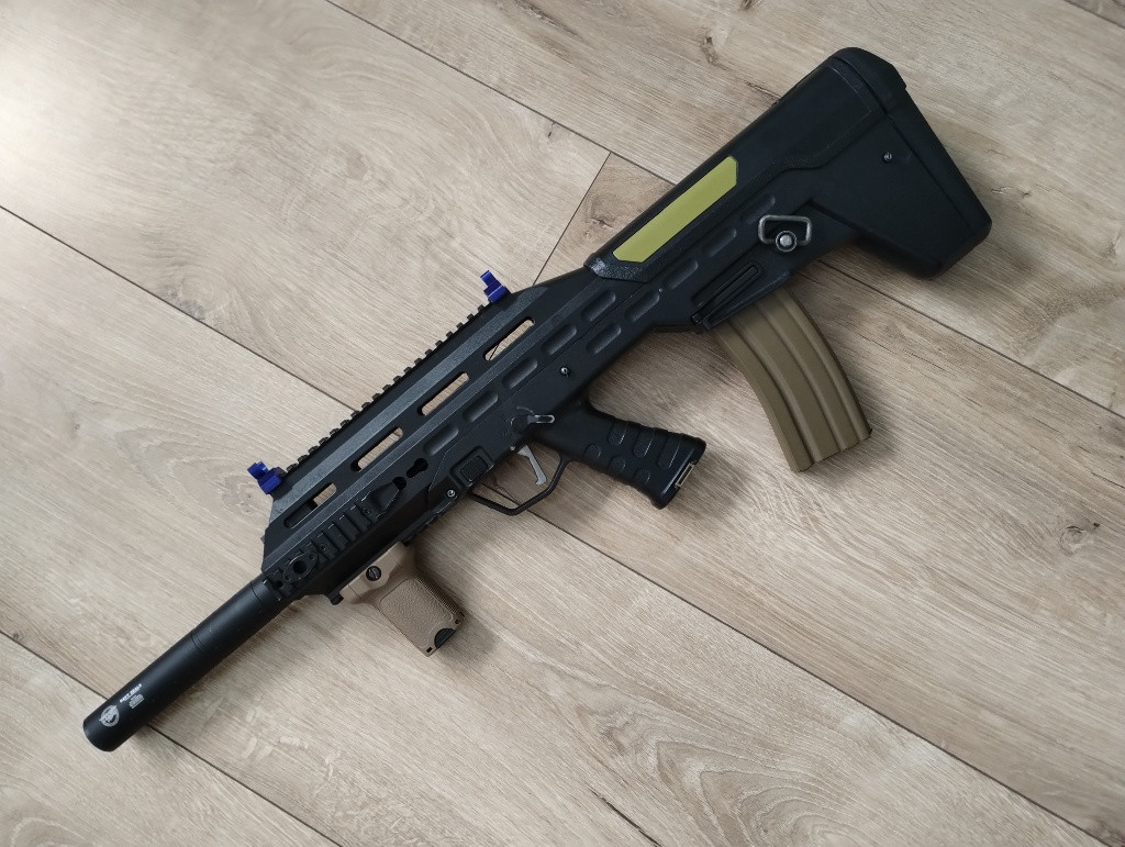 Predám airsoftovú elektrickú zbraň UAR (Urban Assault Rifle) 501 od výrobcu APS. Je to netypická bullup zbraň, kombinuje V3 mechbox, hopup komoru štýlu AK-47/74, M4/ar15 zásobníky. Zbraň prešla mnohými úpravami (zásobníková šachta upravená, aby pasovali všetky zásobníky, custom spúšť na mikrospínač). Upgrade: procesorovka t238, záťažový motor SHS, kolesá 18:1 SHS gen3, piest s kovovými zubami SHS, hlava piestu s ložiskom, plný valec, kovová hlava valca G&G, tryska Epess, CNC hop Up komora, maple leaf presná hlaveň 6.02x455mm, maple leaf mr.hop gumka a omega prítlak. Teraz má 395fps, pridám aj strunu na 435fps. Ku zbrani dám ešte kolimator Novritsch, tlmič, taktickú rúčku, 5 kovových tlačných zásobníkov na 120bb, plastový dlhý točný zásobník, plastový krátky točný zásobník, baterka lipol 11.1V 1000mAh, náhradné mieridlá 3d tlač. https://youtube.com/shorts/7a7w7axU2ms? si=h_wg7nJeihs3Vrr2 https://youtube.com/shorts/pWnyuFAgljI? si=IOTUmP308fLq1vVu