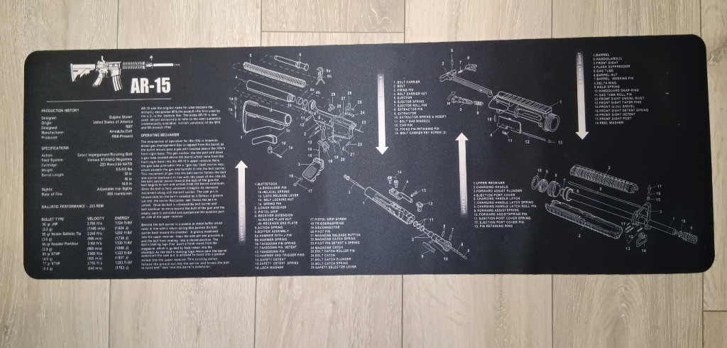 Nabízím k prodeji novou a nepoužitou podložku na čištění zbraní, vejde se na ní AR-15. Ze spodní strany je podložka gumová a neklouže. Cena je pouze za samostatnou podložku.