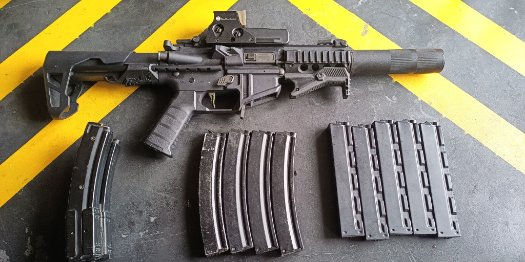 Prodám kompletně přestavěné PDW. Tělo je polymerové od KingArms, uvnitř je vše kompletně vyměněno Retro CNC mech, warhead BLDC motor, Perun procesorovka s clickerem, ocelová kola... Ke zbrani přidám zásobníky a kolimátor. Pět rovných točáků funguje v pohodě, klasické zásobníky sedí trochu hůř. Jelikož je tam rychlý motor, je vhodné použít 7,4V Li-Pol. (TFH)