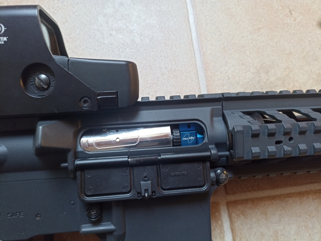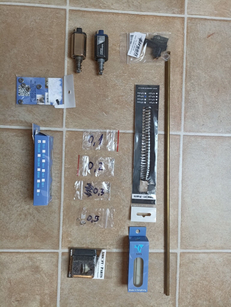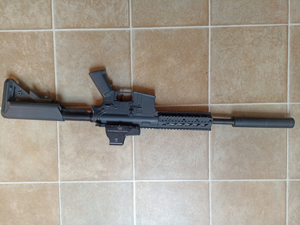 Dobry den, nabízím k prodeji útočnou pušku AR od znacky SPARTAC. Jedná se o plastovou repliku s kterou jsem 5 let aktivně hrával. Na konci roku 2024 byla zrekonstruována, proběhlo výměna ložisek za kuličkové, vyměnění pístu a hlav za duralové, nový převod 100:300, zátěžový motor, nový hopup, pružina AP 140. Vše vymezeno a seřízeno. Z původní pískové barvy přelakována na šedou, osazena tlumičem a optickým zaměřovačem T0551. Ke zbrani patří 2 točné zásobníky a 1 tlačný na 90 kuliček. Mezi prodávané věci patří i pár náhradních dílů jakou vymezovací podložky, úsťová hlaveň, motůrek, a originální komponenty které byli nahrazeny lepšími. Prodám ideálně jako celek, ke zbrani patří i 2 balení kulicek 0,25. Pro více informací mě popřípadně kontaktujte.