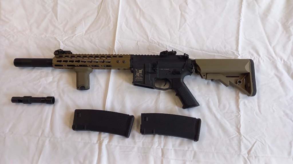 Prodám hranou, ale ve velmi dobrém stavu AR15 od Delta Armory. Tělo je z polymeru předpažbí kov, trn pažby kov. Pružina 120 bez upgradu. Doporučuji používat baterii 7.4V. Ke zbrani jsou dva zásobníky (točáky) a prodloužení hlavně, místo tlumiče. Cena 2800+doprava.