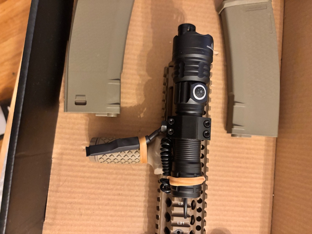Prodám airsoftku AR15 MK18 od Delta armory. Po kompletním servisu byla na jedné rychlo akci. Jsou k tomu 4 zásobniky z toho 3 nove. Nová Baterie Li-pol 11,1V, 1450MAH (30c) Nový kulimátor Mavercick gen III pískový Nová nabíječka znacký TITAN.