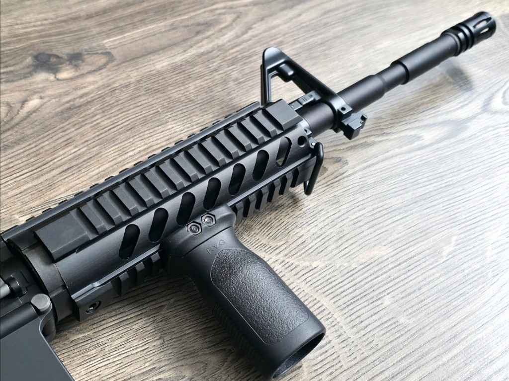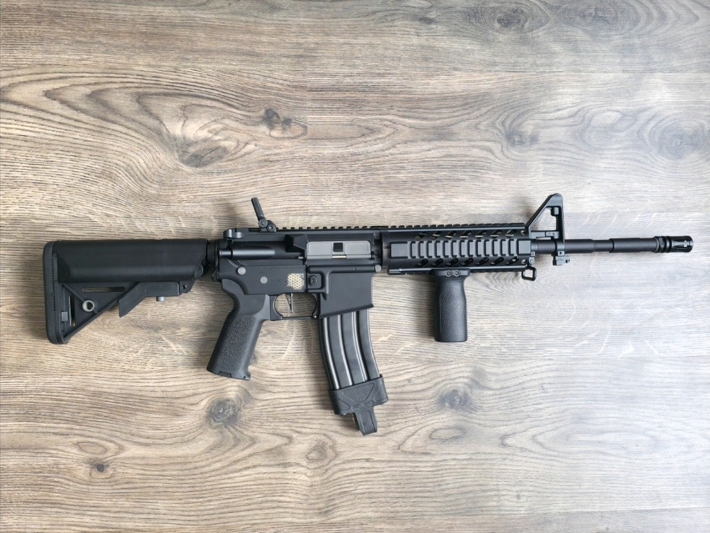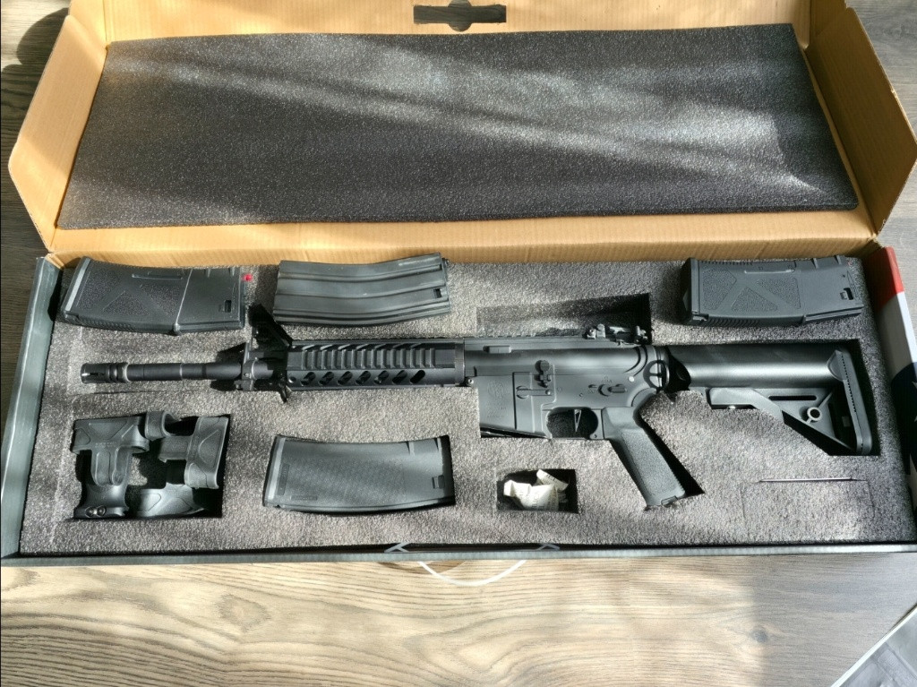 Prodám nepoužitou pušku AR15 od Specna Arms v licenci Rock River Arms. Zbraň byla původně zamýšlena jako záložní, kdyby mi se mi hlavní zbraň vysypala. Ve finále jsem s ní nehrál ani jednou. Na pušku jsem koupil free float 7" předpažbí od SHS, protože původní se hodně vyklalo. Zbraň má mosfet, takže lze používat i 11.1 Li-Pol baterie. Ke zbrani je pět zásobníků, dvakrát Specna Arms a třikrát Arcturus variabilní 30/130 ran. V případě zájmu mě kontaktujte prosím pomocí SMS nebo emailu. V tomto případě preferuji osobní předání, ale pokud bychom se nějak domluvili, tak by to snad možná nebyl problém i poslat. V případě zájmu lze dokoupit i nějaké příslušenství li-pol baterie, krytky RIS rail, klasické mířidlo s uchem, vše je jen o domluvě. Rychlé a slušné jednání = sleva nebo nějaké to příslušenství.