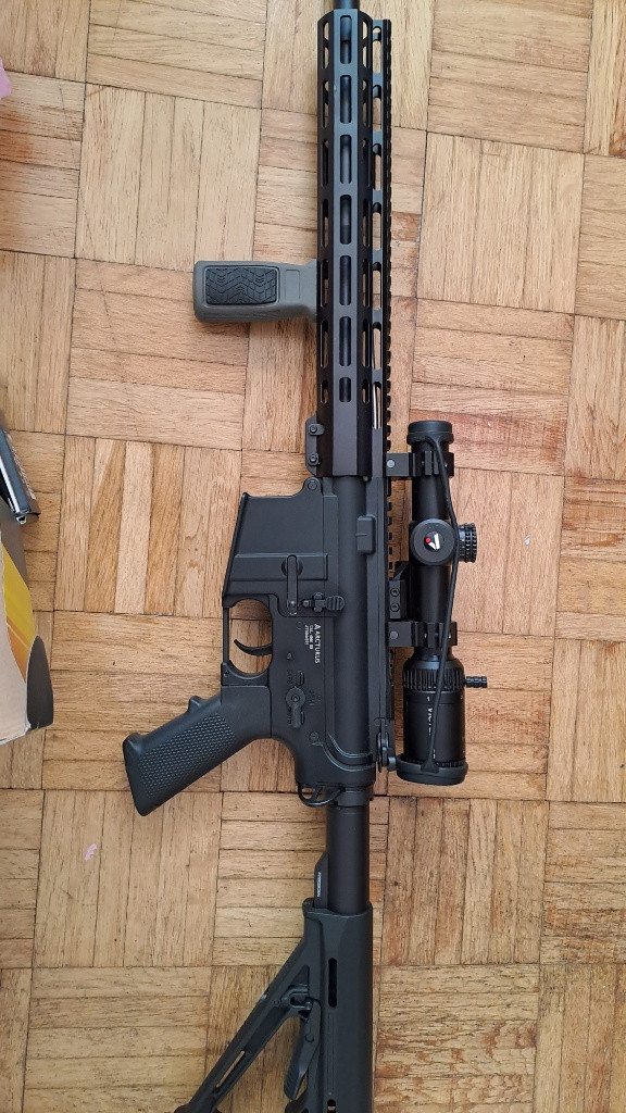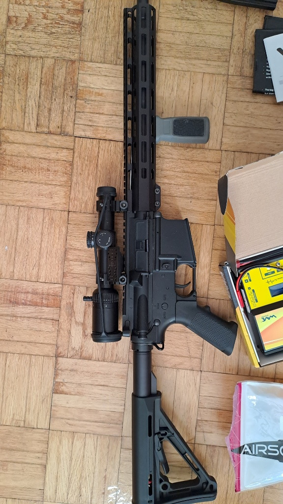 Nenašel jsem pro ni žádné využití. Prodávám to včetně věcí na fotografii. Zbraň s 25mm LPVO, vertikální mlok gripem a 45° destička na kolimator. K tomu nabíječku, 2 zásobníky, origo mířidla, věci na výměnu co přišly s krabicí a 2 baterie, 1 ve zbrani. Zbraň je téměř nepoužitá, střílel jsem jen na zahradě 1x. Bez vad a poškrábání.