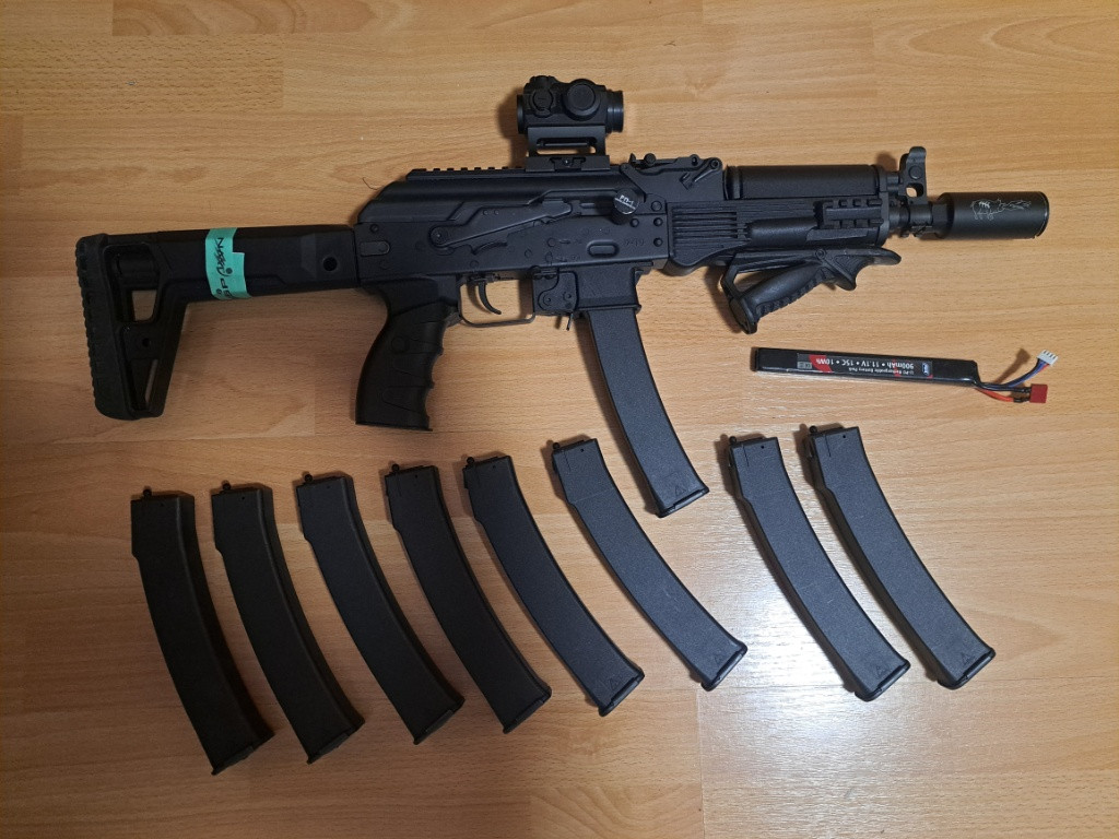 Replika ako nová, kupovaná pred pol rokom. Predávam z dôvodu že mám toho veľa. Replika má rýchlu výmenu pružiny, stačí len sklopiť pažbu. Aktuálne má replika 1,4j a okolo 26 rps. Pridám kópiu gripu DD PTK, Noveske Amplifire, grip na páke záveru RP-1, kolimátor Vector Optics Maverick, 9 zásobníkov a 11,1v baterku. V replike je optická procesorová jednotka Arcturus FE, Vnútro: bezuhlíkový motor T238, CNC kolesá Jwan 18:1(short stroke), piest a valec SHS, Hlava piestu a tryska Epes HET, hlava valca SHS + epes sorbo, 8mm ložiská (na motorovom kolese guličkové ostatné klzné), tŕň pružiny oceľový s ložiskom a poistným šróbom, rotačna TDC hop komora, 4UAD hop gumička. Replika je v TOP stave. Pripravená na hru. Tel. +421918925709