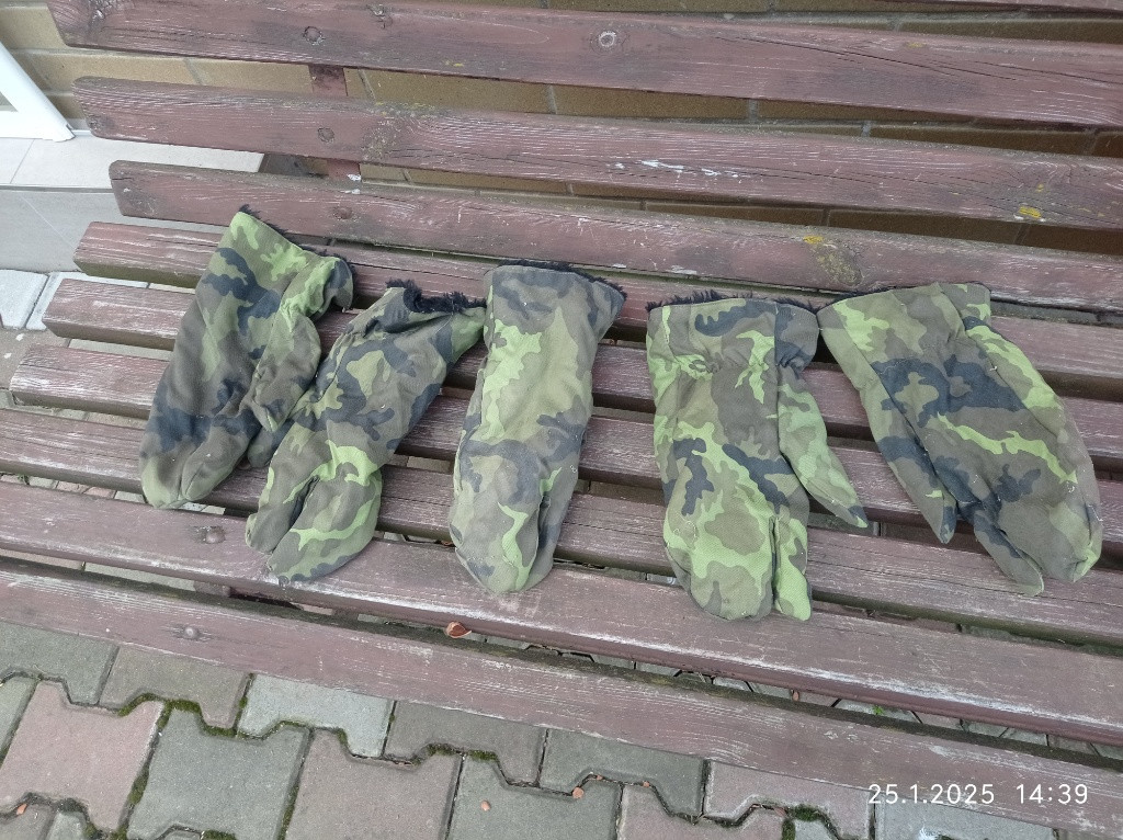 Nabízím army oblečení, historické kousky. 2x kalhoty 1x pokrývka hlavy s odznaky 2x pár rukavic Cenu nabídněte