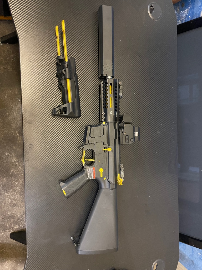 Ahoj , neměl by někdo zájem o ARP od G&G ? V základu + 5x zásobník G&G . Nikdy nehraná , jen jsem si sní pár krát střílel cca 2-3 zásobníky . Pořizovačka byla myslim kolem 11k tedka je kolem 9k . Možnost koupit bez kolimátoru . Preferuji osobní předání . Prosím jen volejte nebo sms , na email nereaguji . Děkuji