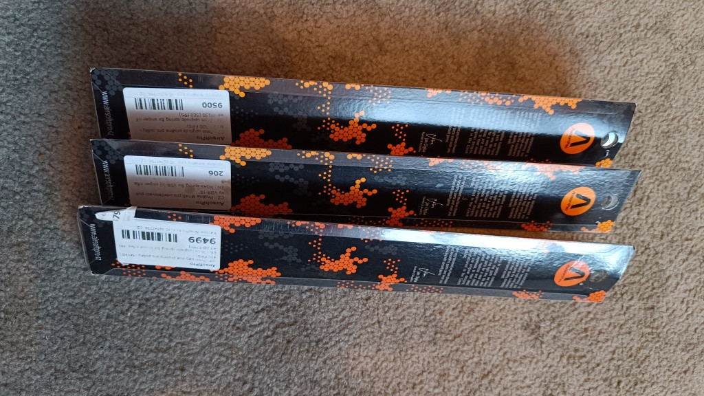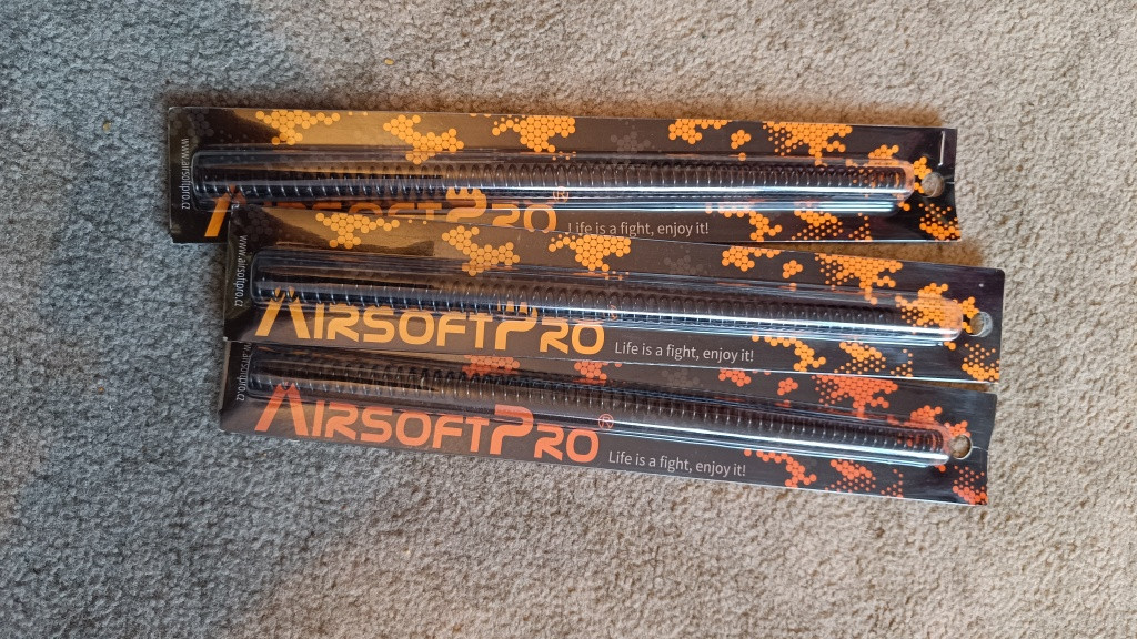 Prodám různé pružiny pro ASPro sety, 7mm: M140 M145 M150.... 9mm: M150 M170. Nepoužité, některé použité pouze na par výstrelu pro test výkonu. Cena 100kč za kus. Zásilkovna, kurýr, osobní odběr není problém :)