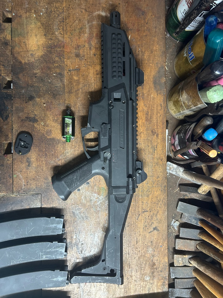 Dobrý den, nabízím k prodeji svého scorpiona, ve zbrani teď udělanej servis, nová kola-asg cnc 19,5:1, motor asg infinity 30K,jefftron leviathan. Ke zbrani jsou 3 tlačáky a jeden točák. Na rukojeti je z plastu vytaženej závit, buďto opravit nebo za pár stovek koupit novej díl. Ještě přidám 3d tištěný předpažbí. Pružina tam je teď základní- na 0,3g je 1,3J a kadence 19- 22rps, záleží na baterce, přidám ještě pružinu M130. Prodávám jelikož kvér již nevyužívám a akorát se na něj práší, v případě zájmu volejte/pište sms/mail. Osobní předání praha/J hradec nebo neni problém zaslat přes zásilkovnu. Cenu nabídněte