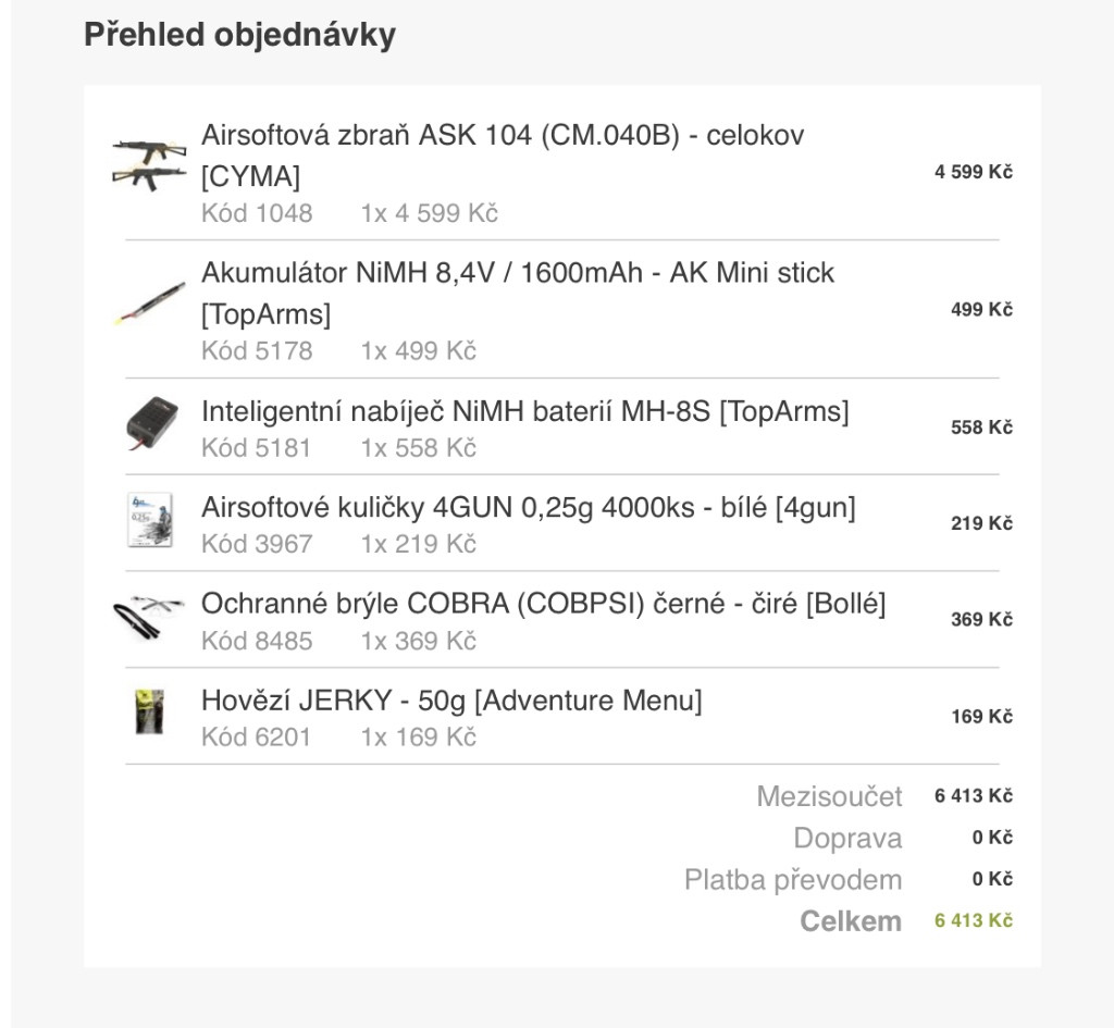 Prodám zbraň koupenou 12.6 vystříleno tak 100 kuliček jinak úplně nová plně funkční Prodávám z důvodu (nemam čas) K tomu kuličky 4gun 0,25 4000 Akumulátor toparms NiMh 8,4V 1600mAh Inteligenci nabíječ NiMh baterii MH-8S Lze přidat daňový doklad o koupi