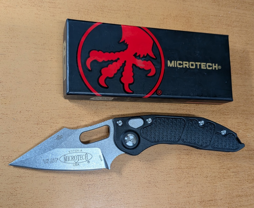 Popis:Automaticky nůž v designu Microtech Stitch