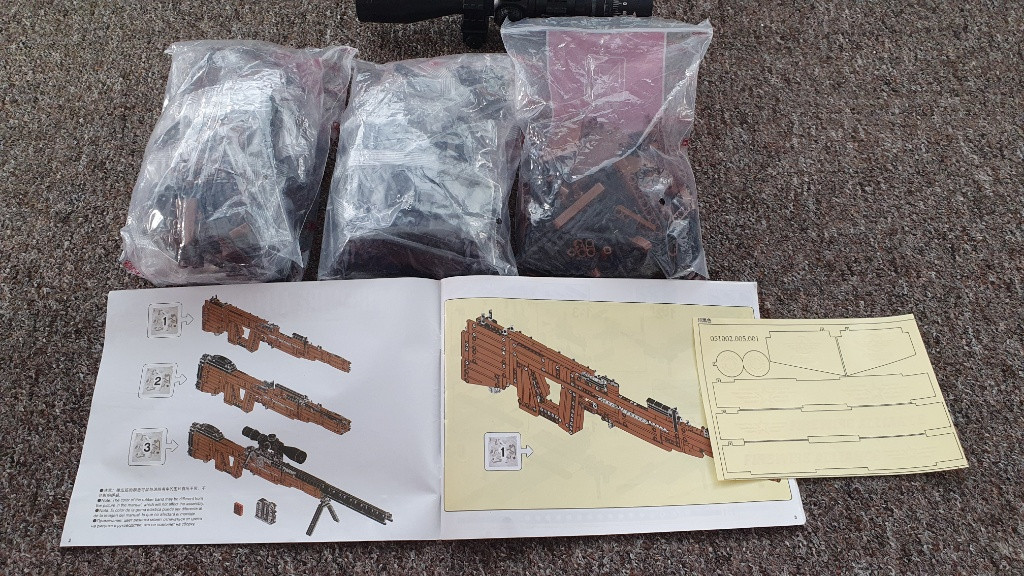MORK 051002 Firewire Alliance AWM Sniper Riffle, Skládačka pušky, která by měla i střílet. Sáček 1 byl rozbaleny a tak nevim zda obsahuje vše, ale měl by, ostatní nerozbaleny. Puškohled byl zlomený a je slepeny. Vše viz foto. Osobní předání nebo doprava možná přes Zásilkovnu- Balíkovnu.