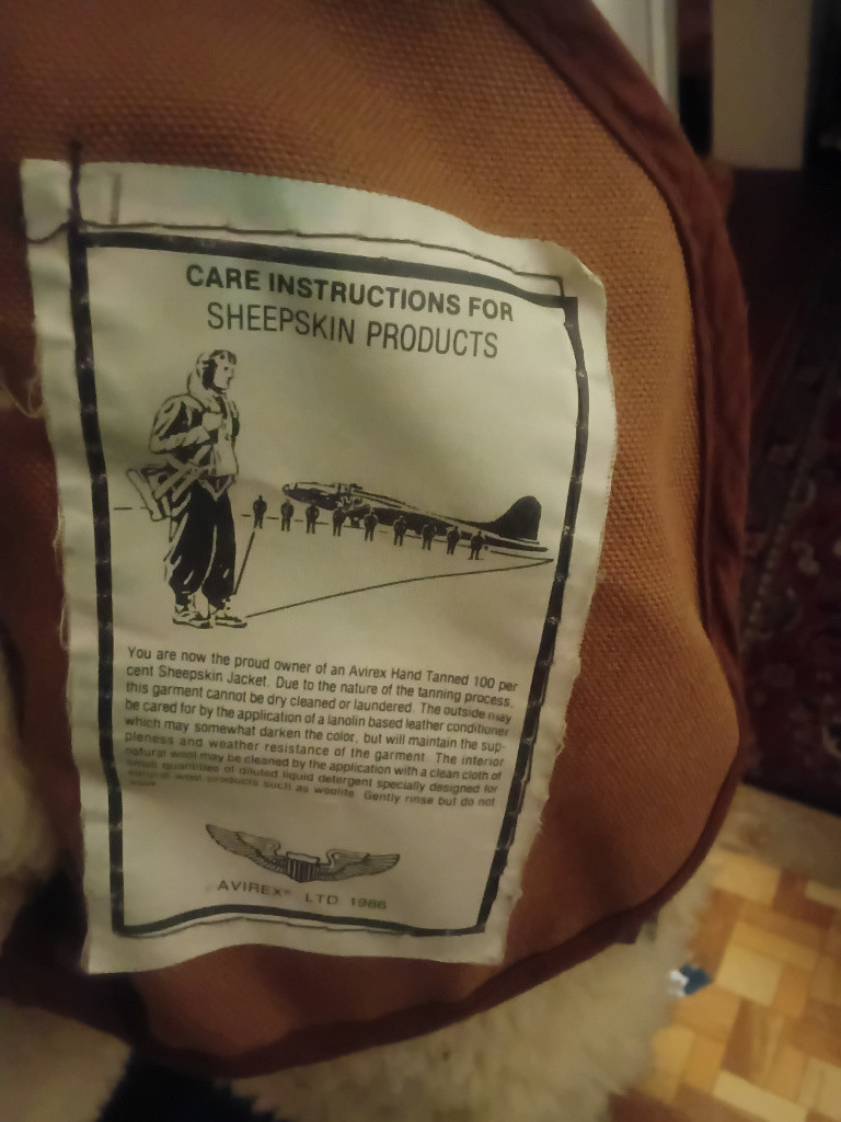 Ze sbírky nabízím znalcům ,originální leteckou B3 Sheepskin Avirex,zakoupena v Kanadě cca před 20 lety.Majitel firmy v,Jeff Lyman , v té době prodal značku Avirex a výrobu B3 přesunul do své druhé firmy "Cockpit USA",kde pokračuje i nyní.Kvalita,provedení i velikosti jsou stejné a na stránkách "Cocpit USA" jsou ceny i velikosti podrobně uvedeny.Tato B3 s původní značkou "Avirex" je zcela ojedinělá,zůstala ve sbírce uložená.Dnes již nelze v tomto stavu typ B3 od Avirex sehnat.Velikost 42 je cca M-L ale pro podrobné míry raději navštivte stránky "Cockpit USA". PC 1370,-USD .