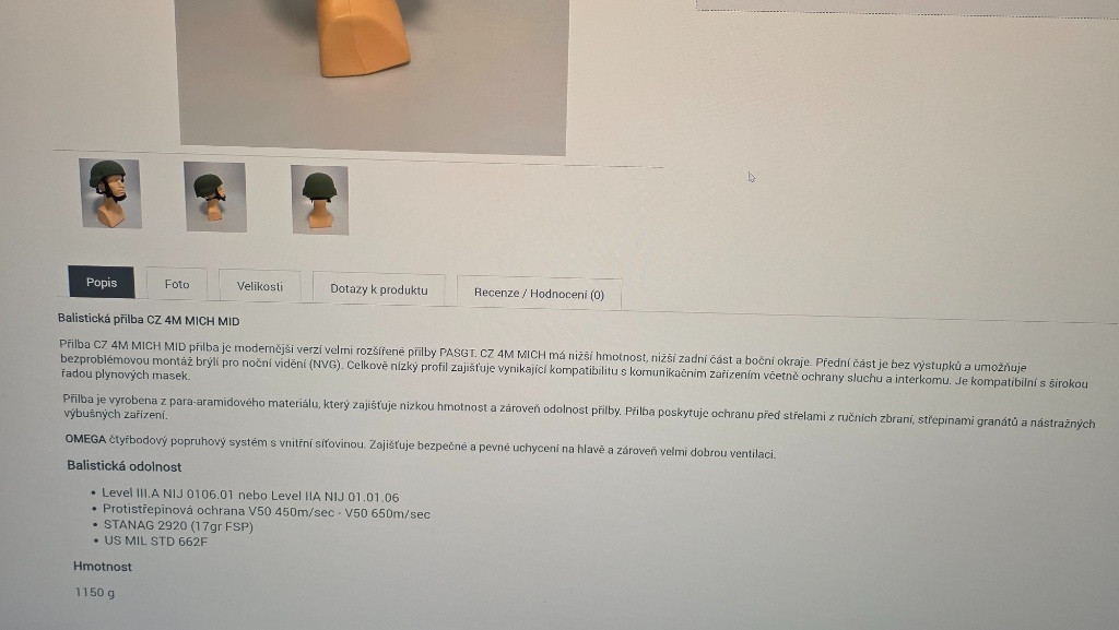 | balistická přilba s ochranným štítem | Helmy | 07. 12. 2025 14:42 |