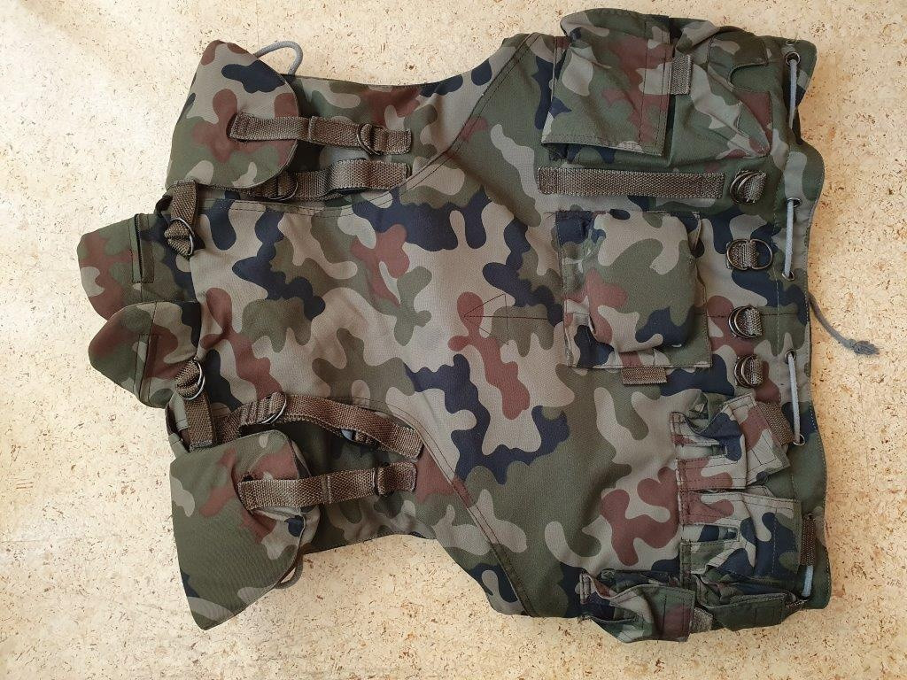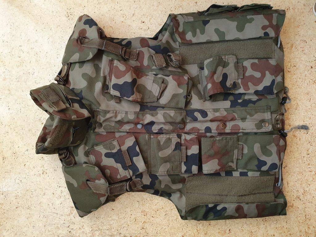 Prodám balistickou vestu polské armády. Spousta kapes / sumek na všechno možné (4 zásobníky, vysílačka, granátovky, "batohové" kapsy na zádech....) Měkká balistika ve všech dílech vč. límce a ramenních chráničů. Vesta vypadá nepoužitě, žádné poškození, odření apod. Velikost L, obvod nastavitelný suchými zipy.