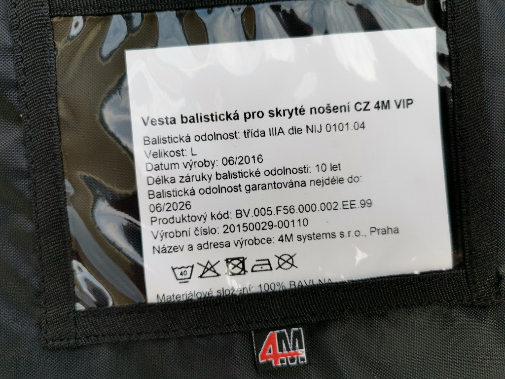 Popis:balistická vesta CZ 4M model VIP