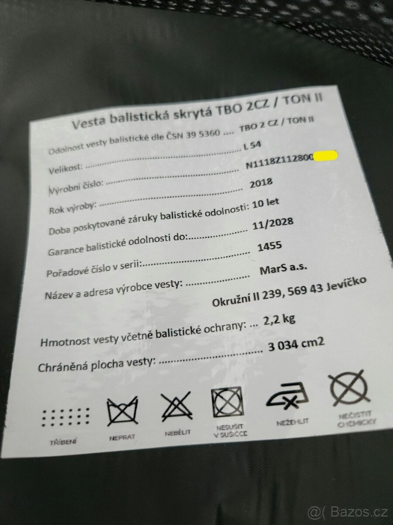 Prodám vestu od výrobce Mars Jevíčko odolností TBO 2 české normy proti krátkým pistolovým řežím (třeba 9mm Luger,americká norma III.A), a ochrana proti propíchnutí TON II. Velikost XL je taková univerzální, možno nastavení doladit sucháčema aby vesta seděla. Expirace vesty do 11/2028 . Velkou výhodou může být pohodlné nošení pod bundou,mikinou,kombinézou....pro svou vlastní ochranu o které nikdo nemusí vědět. Vesta ve výborném stavu,minimálně nošená a dobře skladovaná ve vodorovné poloze v tmavé místnosti se stálou teplotou. Stejný model vesty používá SKPV policie ČR. Cena za vestu je 6500kč,možnost zaslání Zásilkovnou na dobírku. Rozprodej přebytků z moji sbírky co nevyužiju.