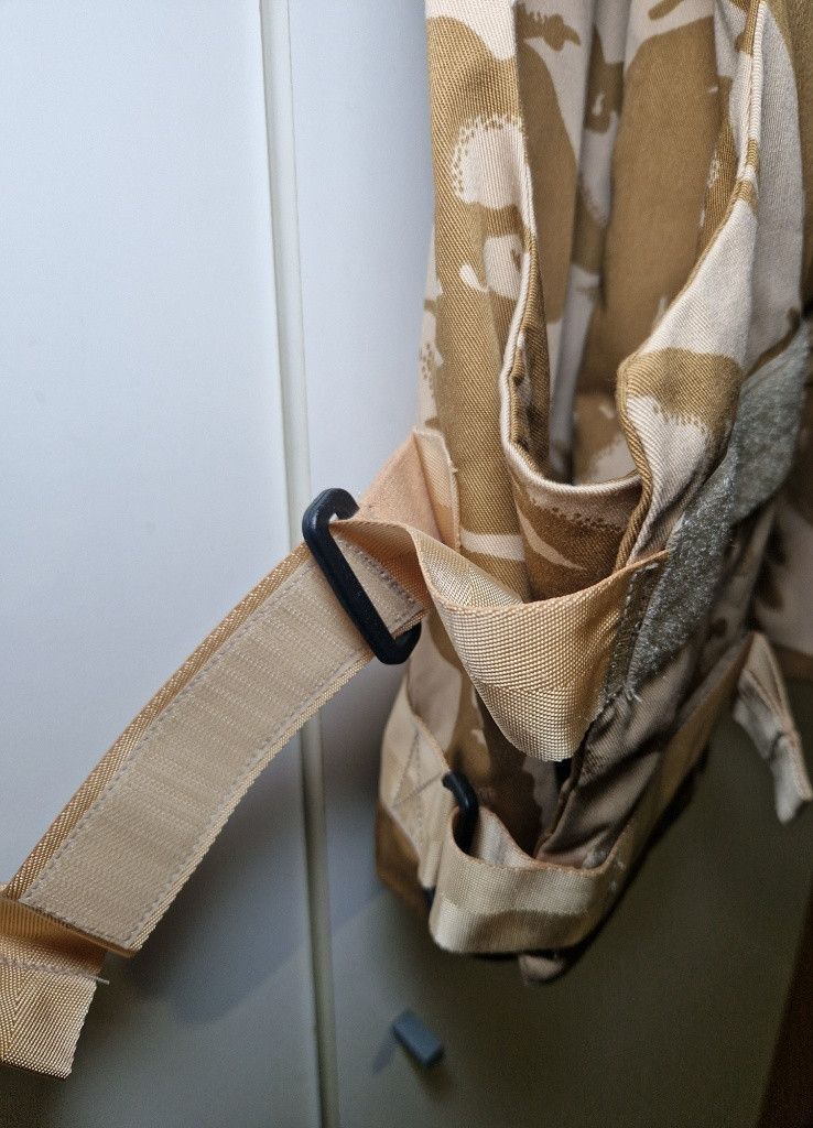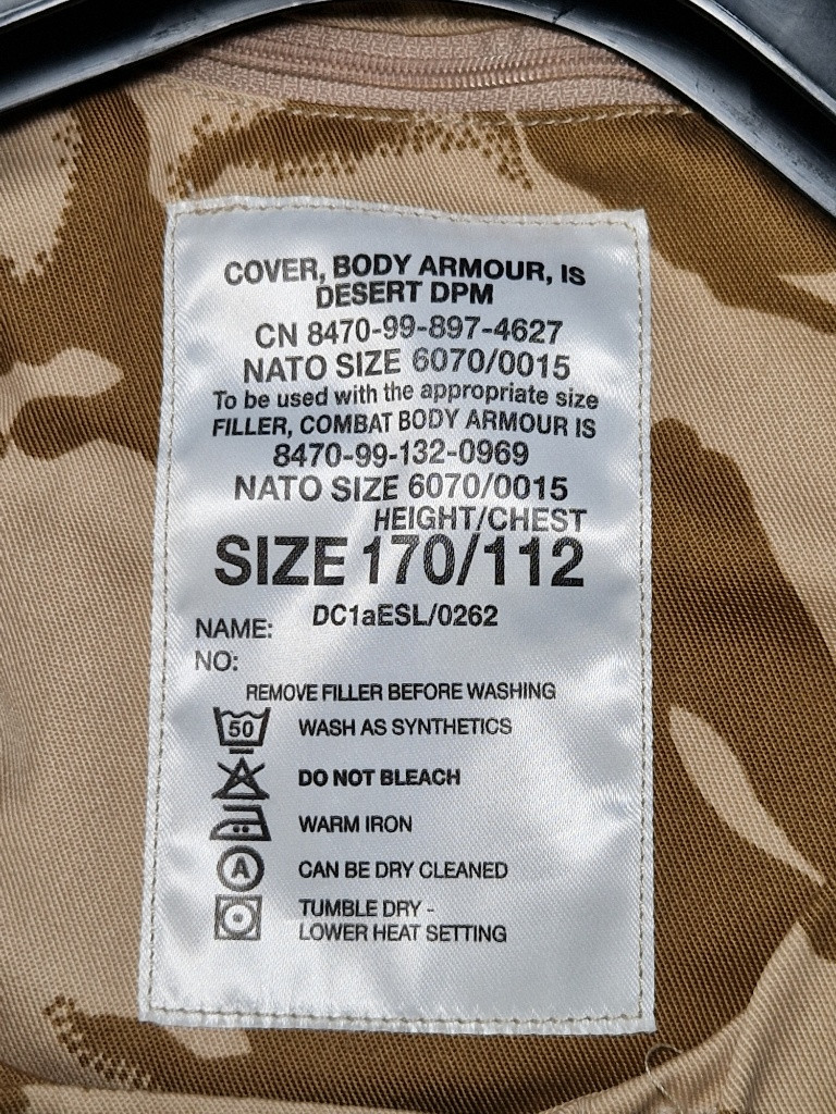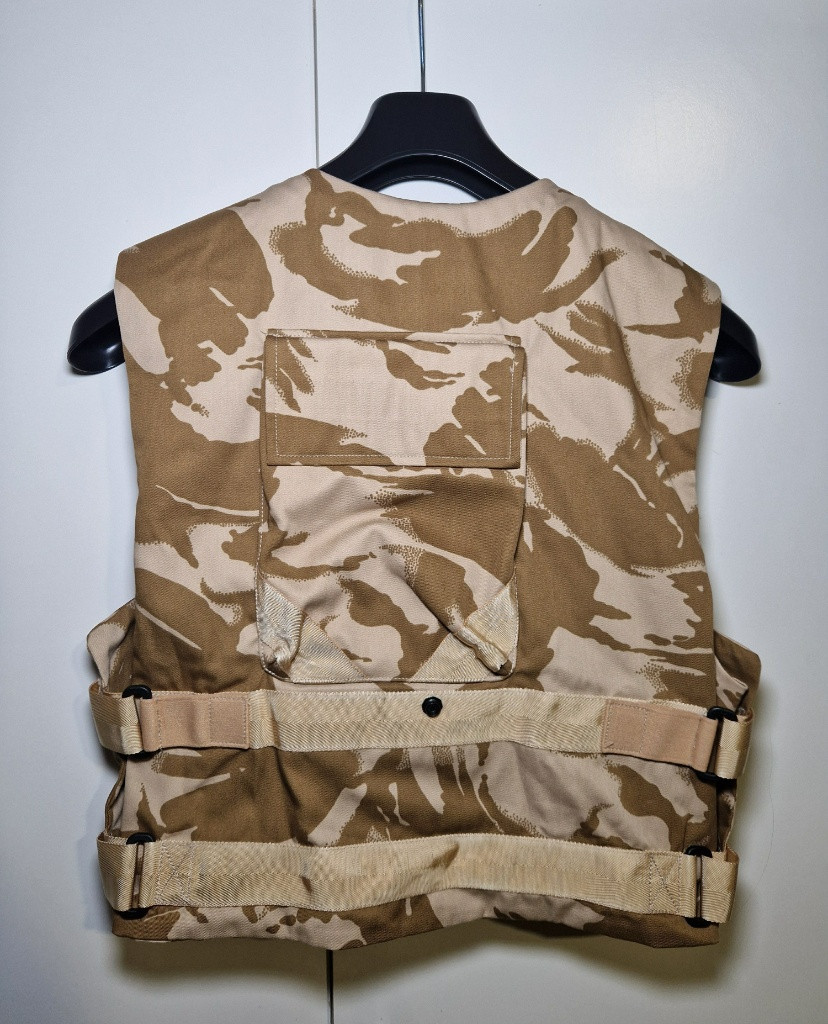 Taktická balistická neprůstřelná vesta, pouštní maskování DPM – Velká Británie Velikost: 170/112 (výška/obvod hrudníku) Nová, nepoužitá, dlouhodobě skladovaný kus. Zapínání na suché zipy, nastavitelná velikost pomocí postranních popruhů na suchý zip. Na přední a zadní straně se nachází kapsa na suchý zip. Jedná se pouze o samostatnou vestu, neobsahuje balistické ani protistřepinové pláty. Kód výstrojní součástky: NSN: 8470-99-897-4630, NSN: 8470-99-978-9259 Pro jakékoliv dotazy mne kontaktujte, obratem Vám odpovím.