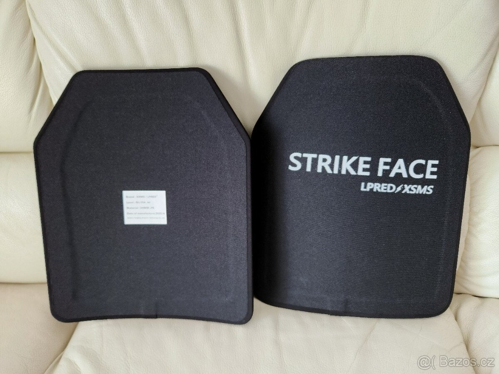 Pláty o rozměru 25x30cm a váze 0,5kg. Odolnost plátů je III.A tedy proti pistolovým rážím - stejná odolnost jako měkká balistická vložka. Materiál plátů UHMW-PE ,ze stejného materiálu se dělají balistické přilby. Výhodou proti měkké balistické vložce je, že nelze propíchnout nožem! Datum výroby 2025/4 ,nové nepoužité. Cena za oba (přední + zadní) je 4500kč + Zásilkovna na dobírku.