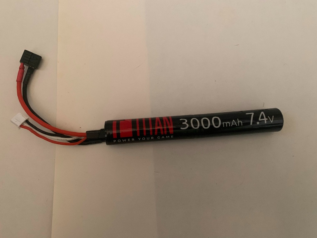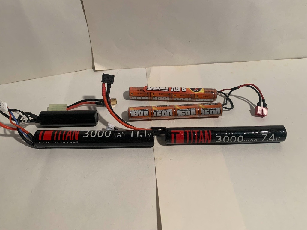Prodám airsoftové baterie Titan, Lancer tactical. Titan - jedna je 11.1 V, druhá je 7.4 V, obě mají 3000mAh Lancer tactical - 9.4V 1600mAh stav - všechny jako nové Cenu nechám dohodou