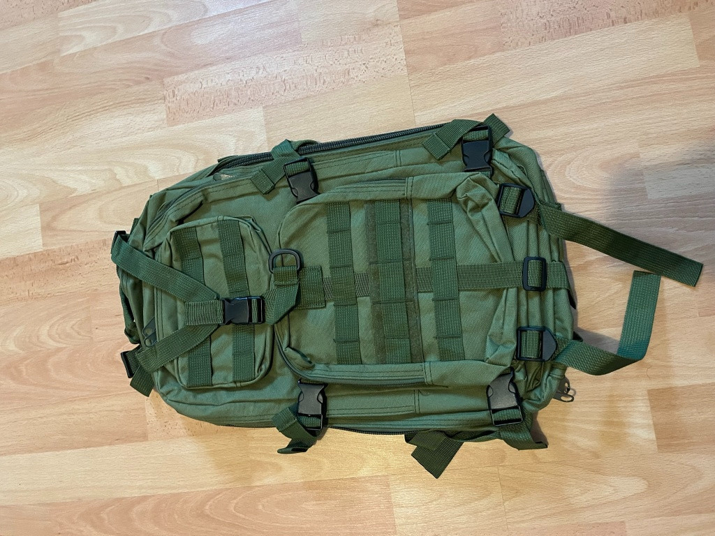 Prodám taktický batoh s molle systémem viz fotky. Bez poškození nebo významných známek používání. Objem bude asi 30l. CENA 500 Kč