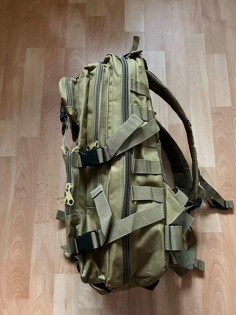 Prodám taktický batoh s molle systémem viz fotky. Úplně nový nepoužitý. Objem bude asi 35l. CENA 500 Kč