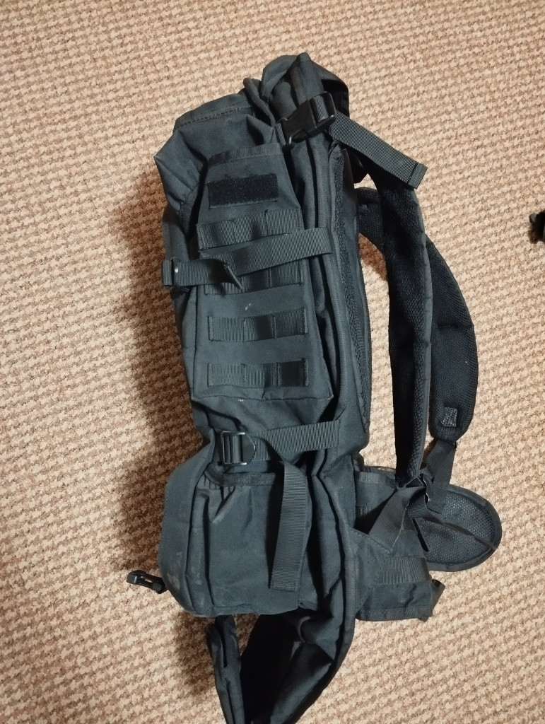 Velký zánovní 60 l batoh. Je možnost v něm přenést i zbraň. Osazen molle vazbou, bederní pás. Všechno funguje jak má. Posílám přes zásilkovnu