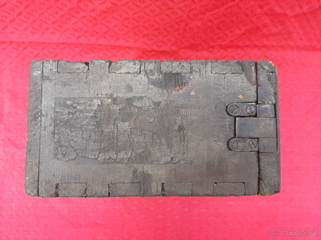 Popis:Bedna - kastlík pro kulomet MG08 - ww1
