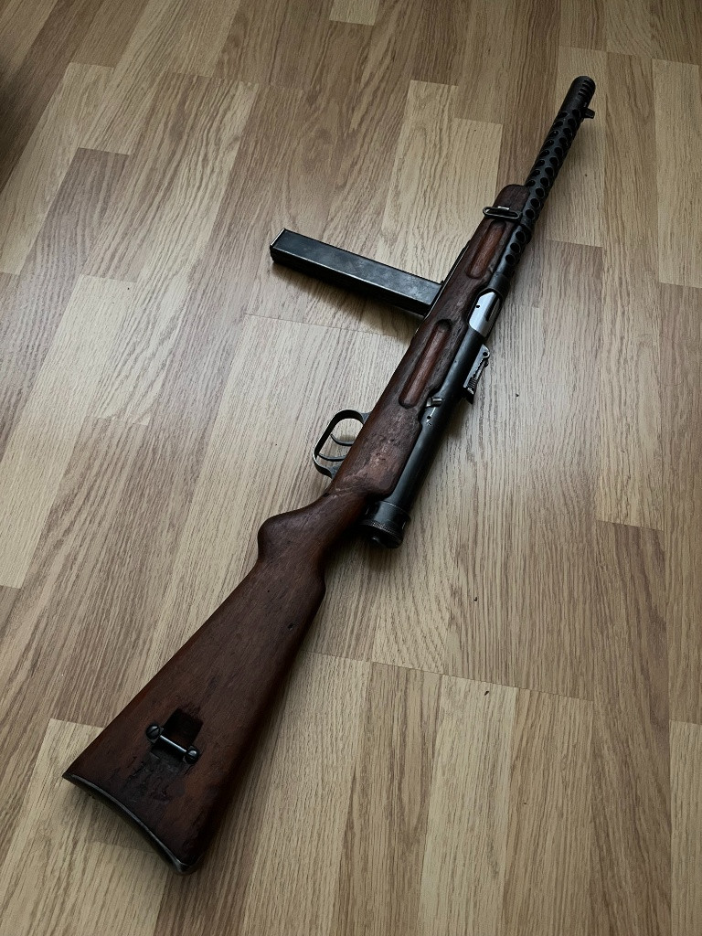 Prodám pěkný znehodnocený samopal Beretta 38 A (MAB38) válečné produkce pro Rumunsko. Rozebiratelný, pohyblivý a s dokladem o znehodnocení. Pevná cena.